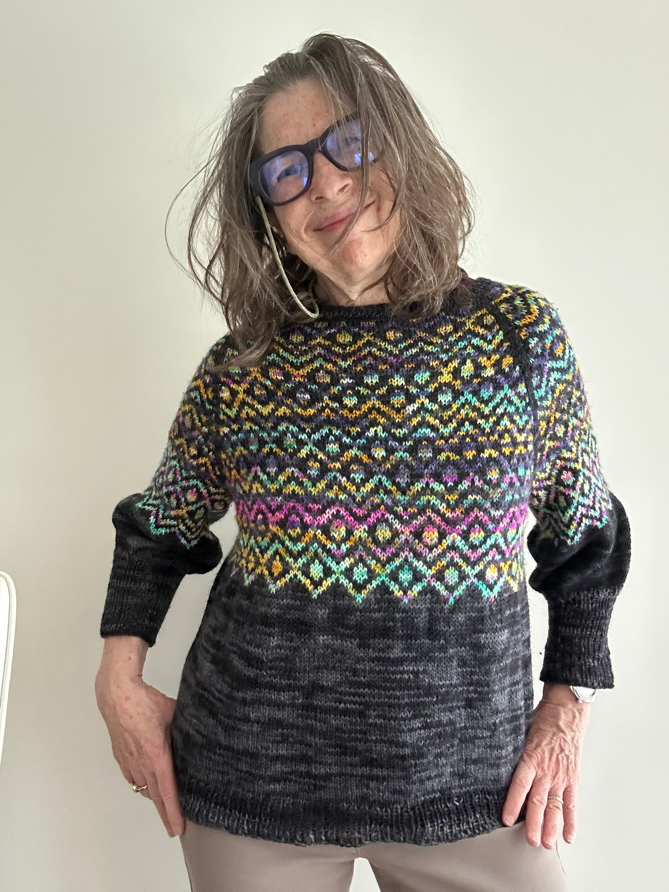 Stranded knitting, knit top down in the round.