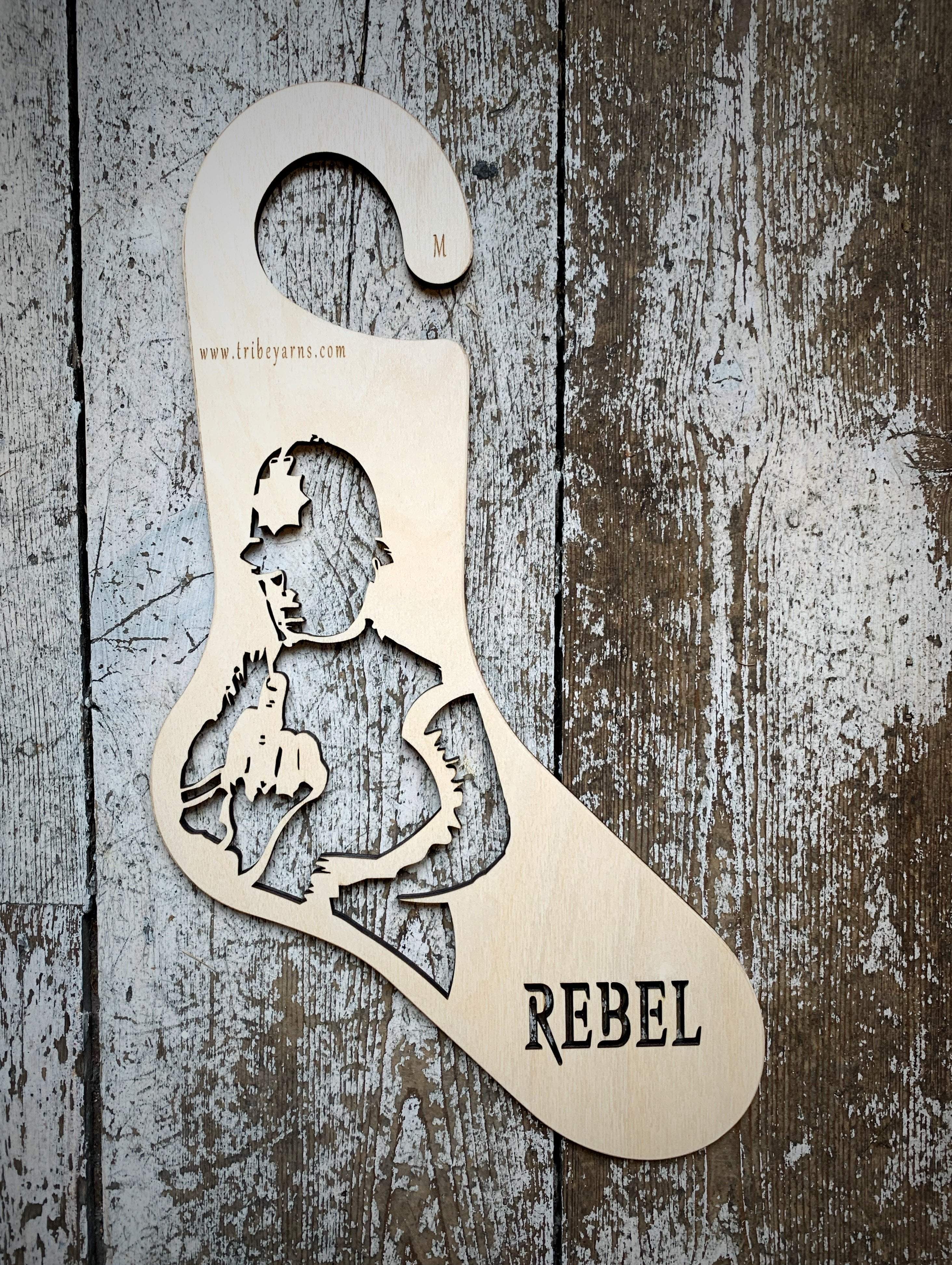 Fabulous Banksy Rude Copper Sock Blockers, for the REBEL in you! Handmade from natural Baltic Birch plywood! Strong and sustainable, and made exclusively for Tribe!