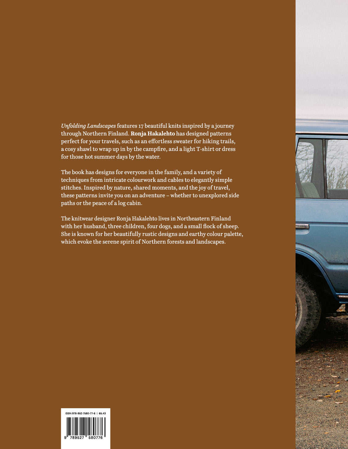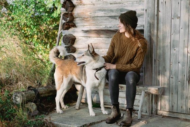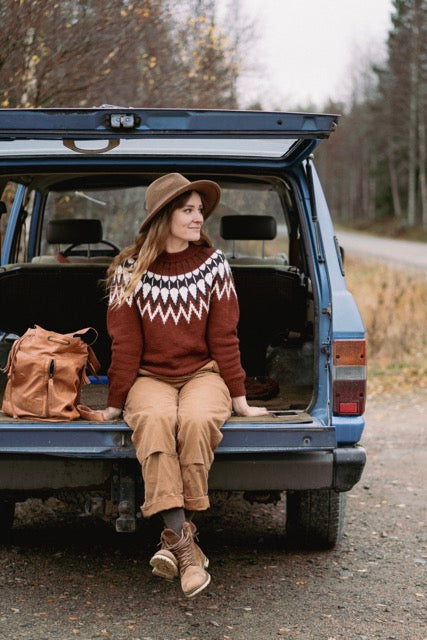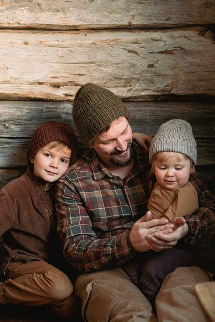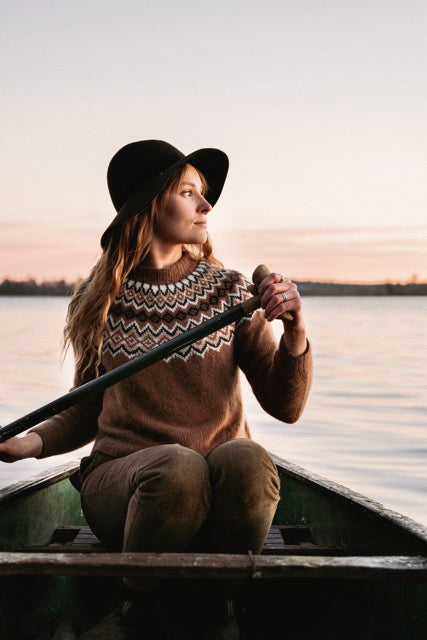 The knitwear designer Ronja Hakalehto lives in Northeastern Finland with her husband, three children, four dogs, and a small flock of sheep. She is known for her beautifully rustic designs and earthy colourpalette, which evoke the serene spirit of Northern forests and landscapes.