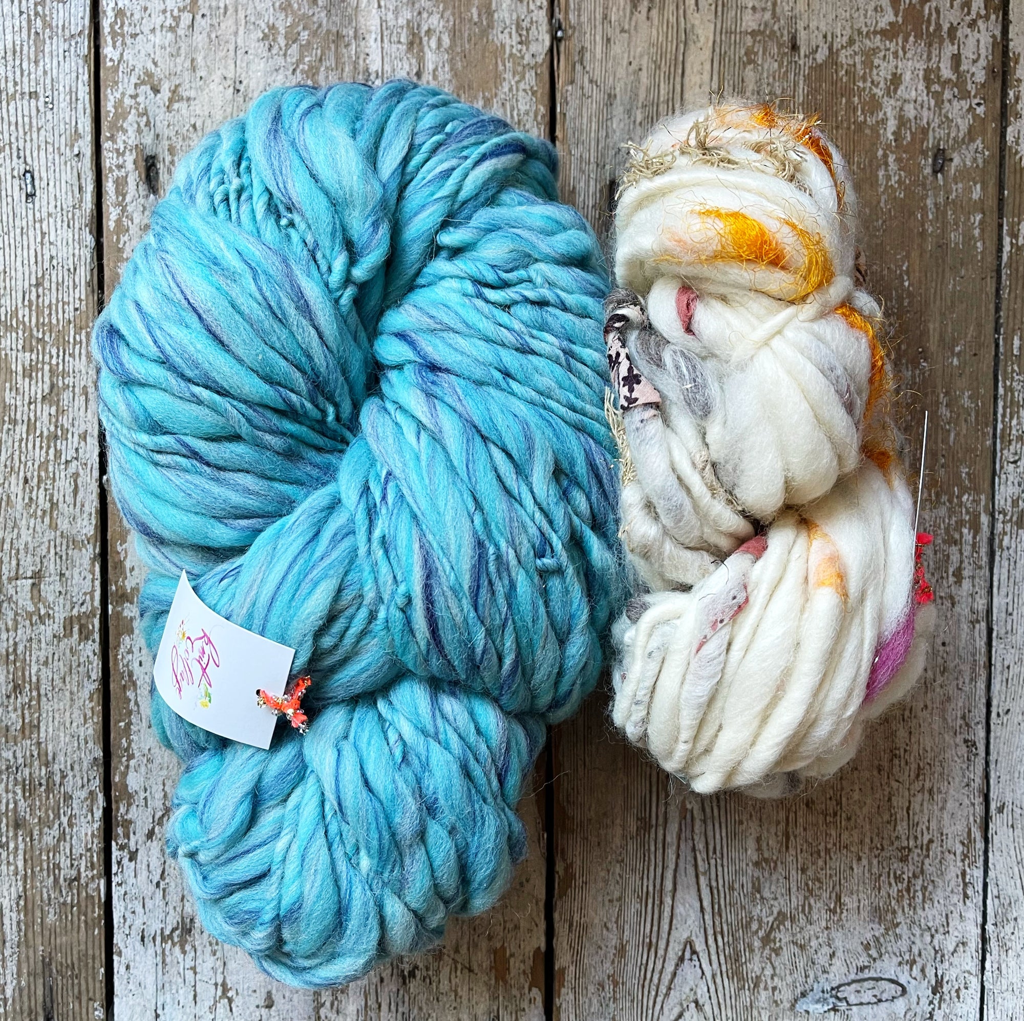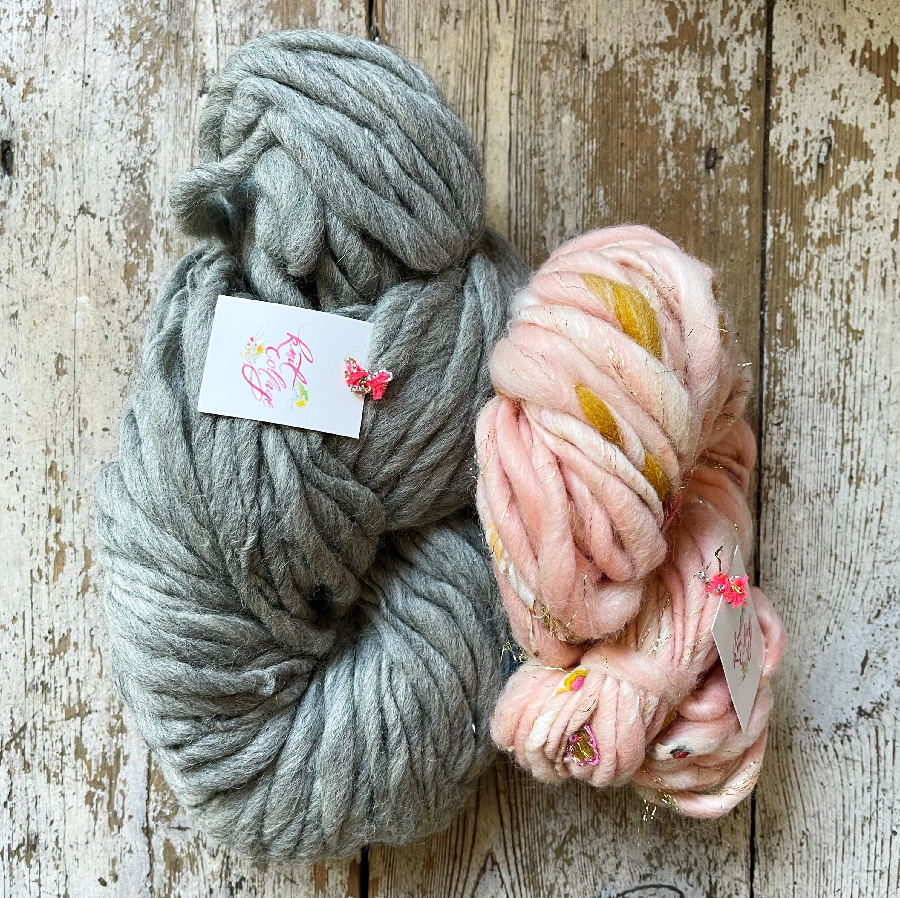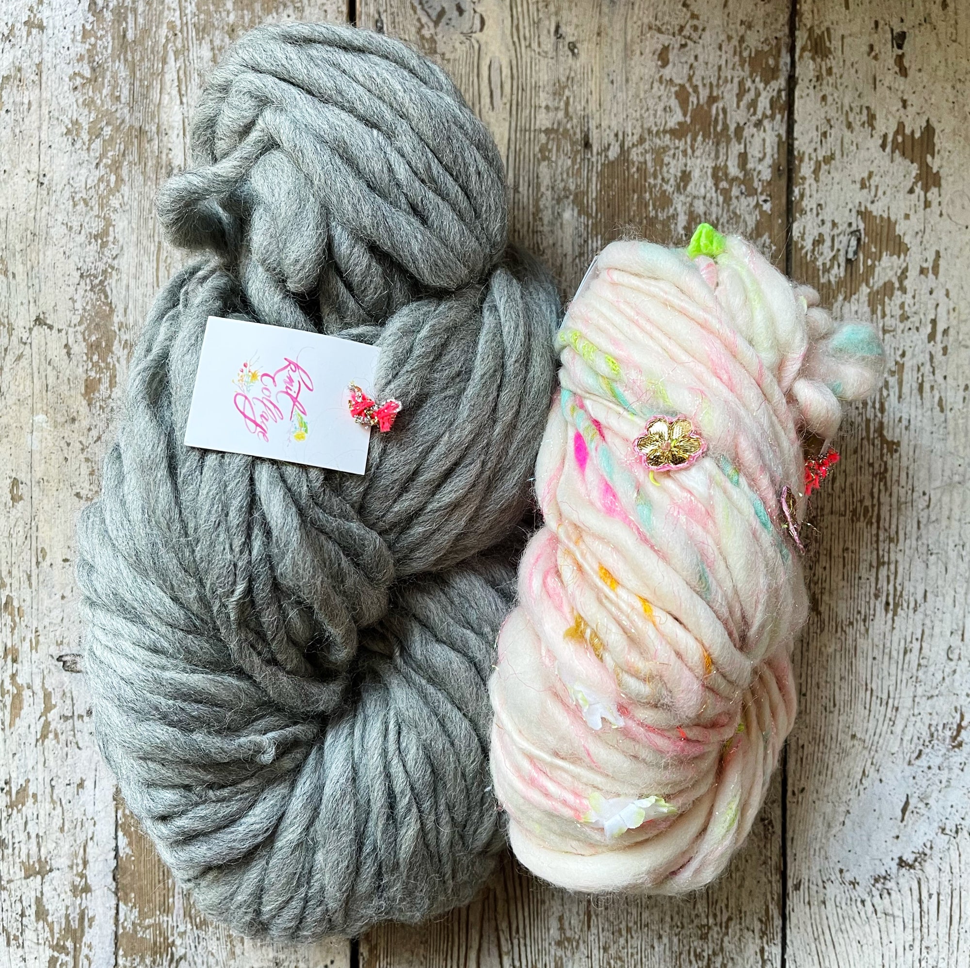 They do it all - the spinning is just part of it! At any time only 5-6 ladies are spinning while the rest card fiber, crochet tiny flowers, embroider sparkly paisleys, organize trims or check each skein for quality, the list goes on! Truly each yarn is specially handcrafted with love and care and represents a loving partnership between myself, the designer, and this talented group of women.