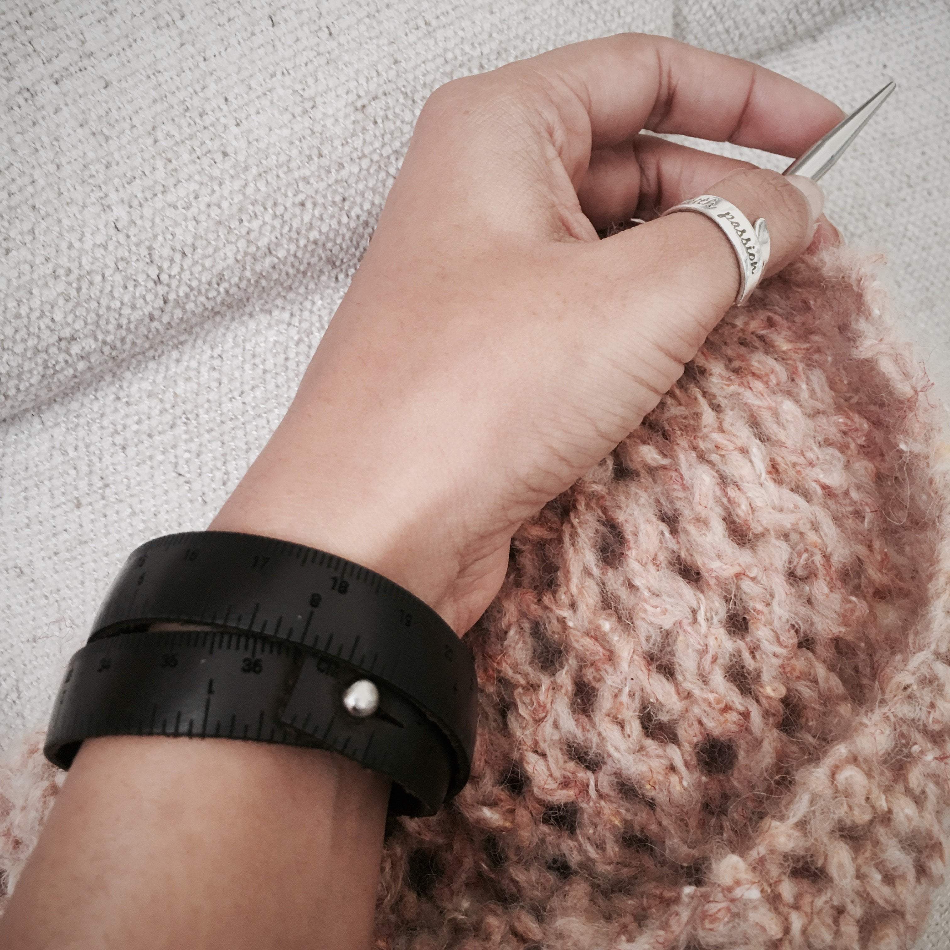 Wrist Ruler is a cool leather wristband with engraved inch and centimeter measurements.