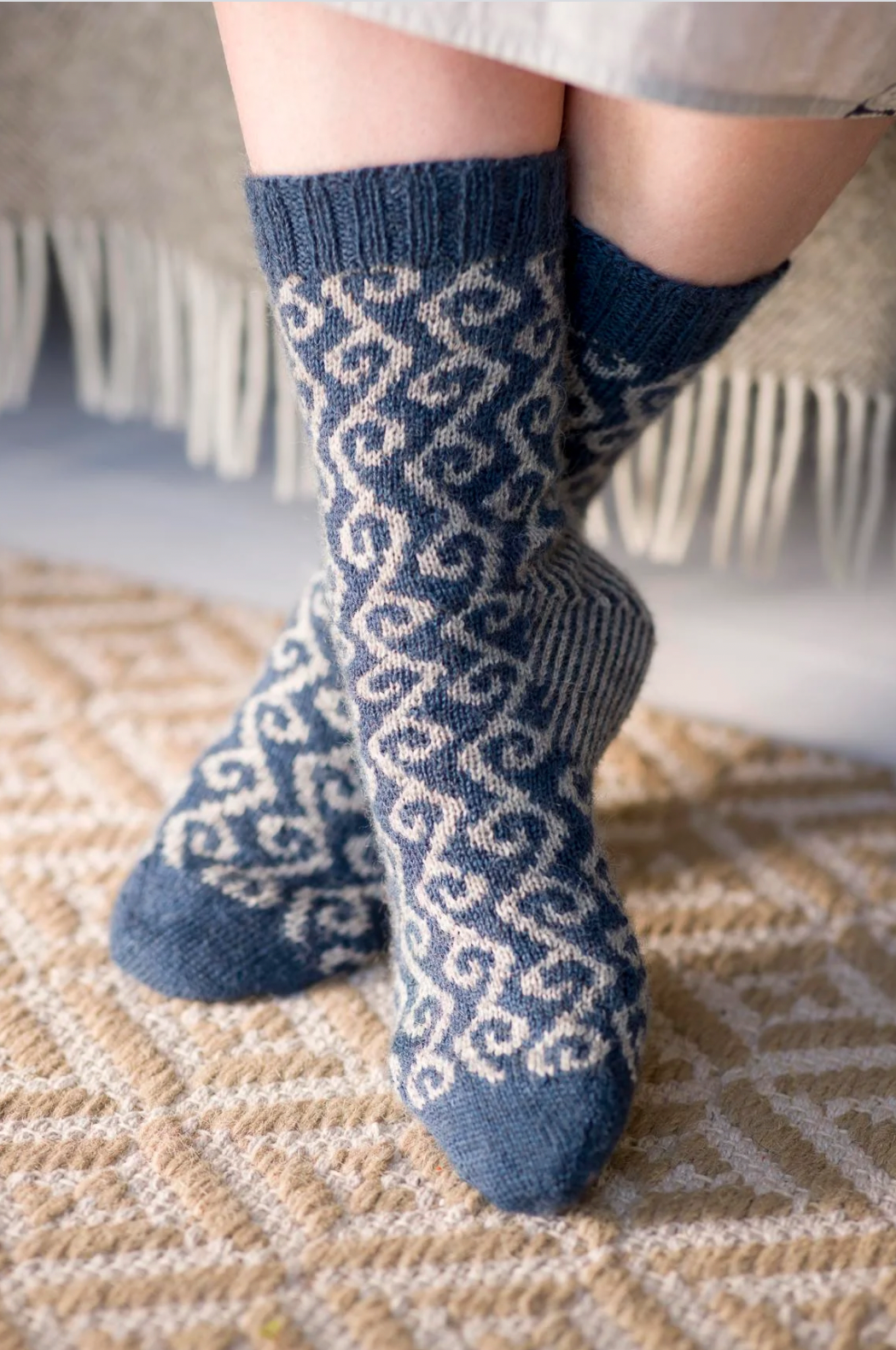 Among our Bluestocking-inspired designs you’ll find openwork and texture, stripes, chevrons, stranded colourwork, and a go-to sock and stocking recipe named for talented eighteenth-century classicist (and knitter) Elizabeth Carter.