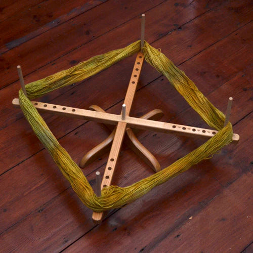 No clamping needed! Amish inspired table-top swift by ChiaoGoo to convert your skeins to cakes.