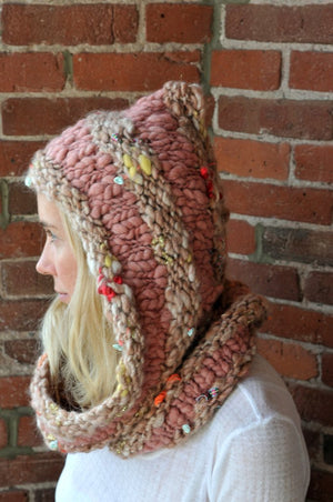 The hoodie cowl pattern is Knit Collage's most popular pattern to date! It is also their most functional for cold weather, keeping your head and neck toasty and warm all at once.