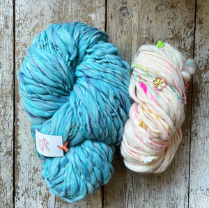 All of the Knit Collage dyeing, carding and spinning takes place in Punjab, India by a team of 13 expert women. When the business first started in 2010, I spent countless hours teaching this awesome Indian team how to craft my yarn designs on traditional spinning wheels. It was no easy feat getting it off the ground but now these women are true masters that spin and craft well beyond my skill level.