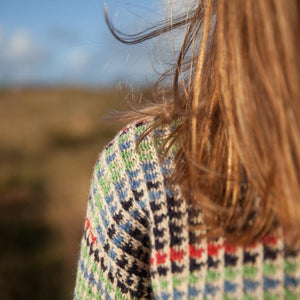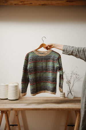 Part of the colourful series, but with a thicker structure, larger borders, this one matches our shawl no.30! It is worked as usual one colour at a time!. A light sweater that will definitely add some colour and joy to your closet.