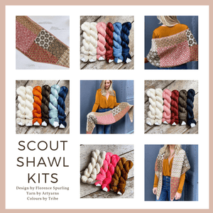 We've created some GORGEOUS kits for Florence Spurling’s Scout Shawl Pattern (creator of the Elvan Shawl pattern).